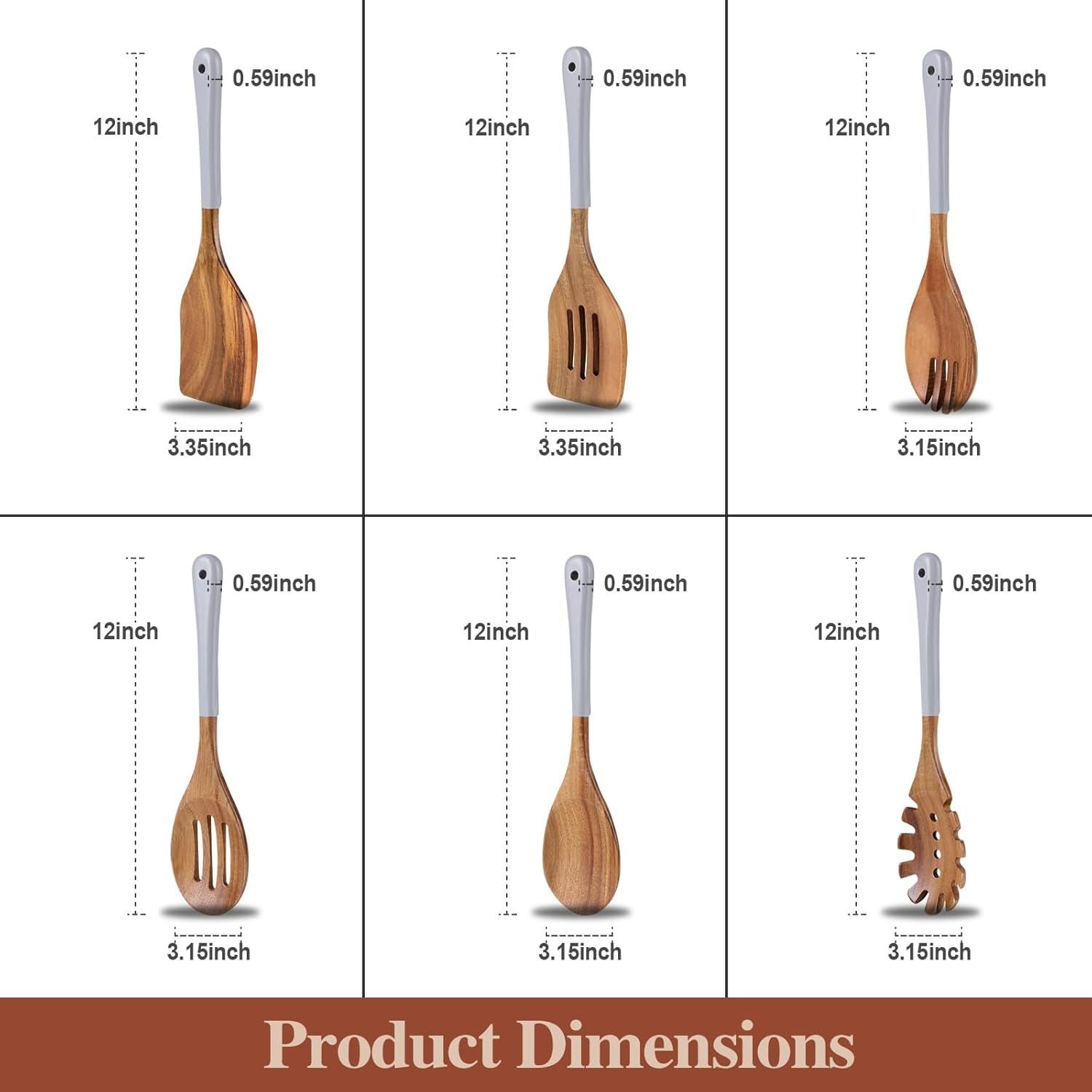 Wooden Spoons For Cooking, 6 Pieces Natural Acacia Wooden Cooking Utensils or Non-Stick Wooden Kitchen Utensil Set for Kitchen Essentials, Wood Cooking Utensils Set with Hanging Hole, Grey