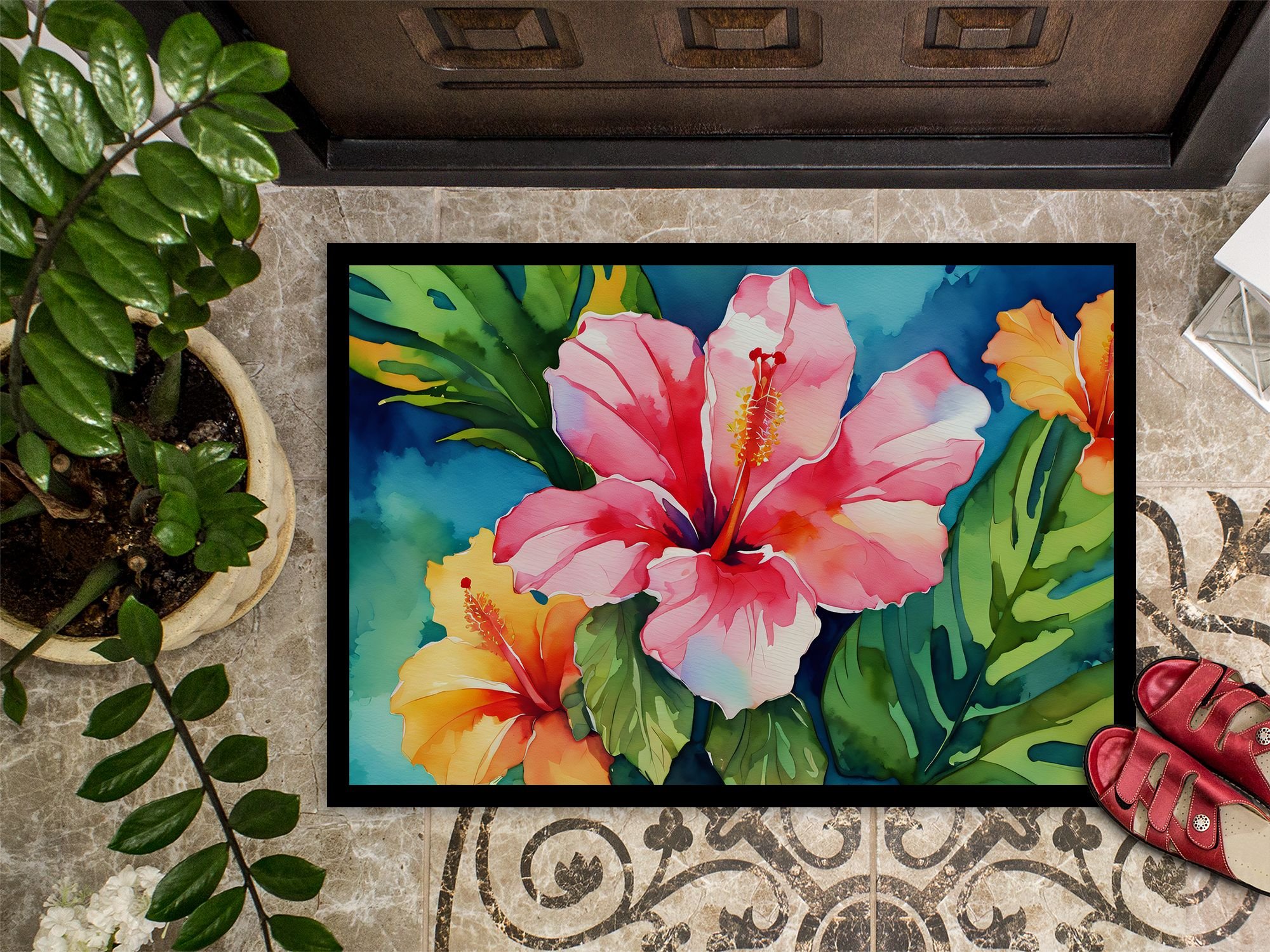 NEW Hawaii Hawaiian Hibiscus in Watercolor Doormat Front Door Mat Indoor Outdoor Rugs for Entryway, Non Slip Washable Low Pile, 18H X 27W NEW Hawaii Hawaiian Hibiscus in Watercolor Doormat Front Door Mat Indoor Outdoor Rugs for Entryway, Non Slip Washable Low Pile, 18H X 27W NEW Hawaii Hawaiian Hibiscus in Watercolor Doormat Front Door Mat Indoor Outdoor Rugs for Entryway, Non Slip Washable Low Pile, 18H X 27W